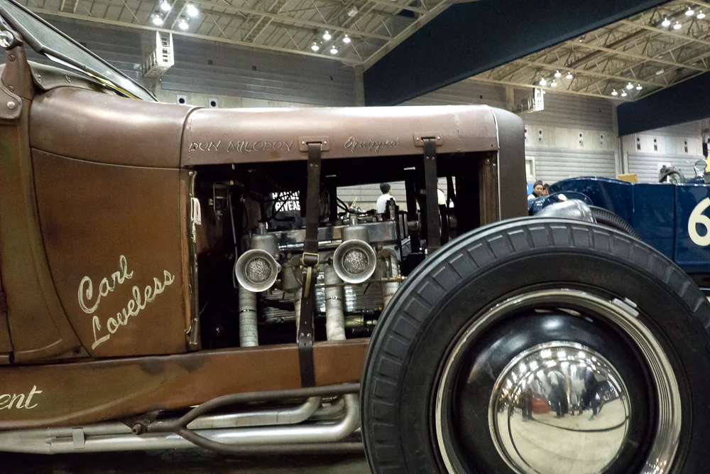 The cars at Mooneyes ran the gamut from stripped down, flat head V8 bearing, straight line desert racers to glossed, pinstriped and chromed beauties. Some cars even spilled over into Low Rider territory with completely independent hydraulic suspensions while others mixed muscle car styling into the mix with some of those transition period cars from the mid to late 50s.